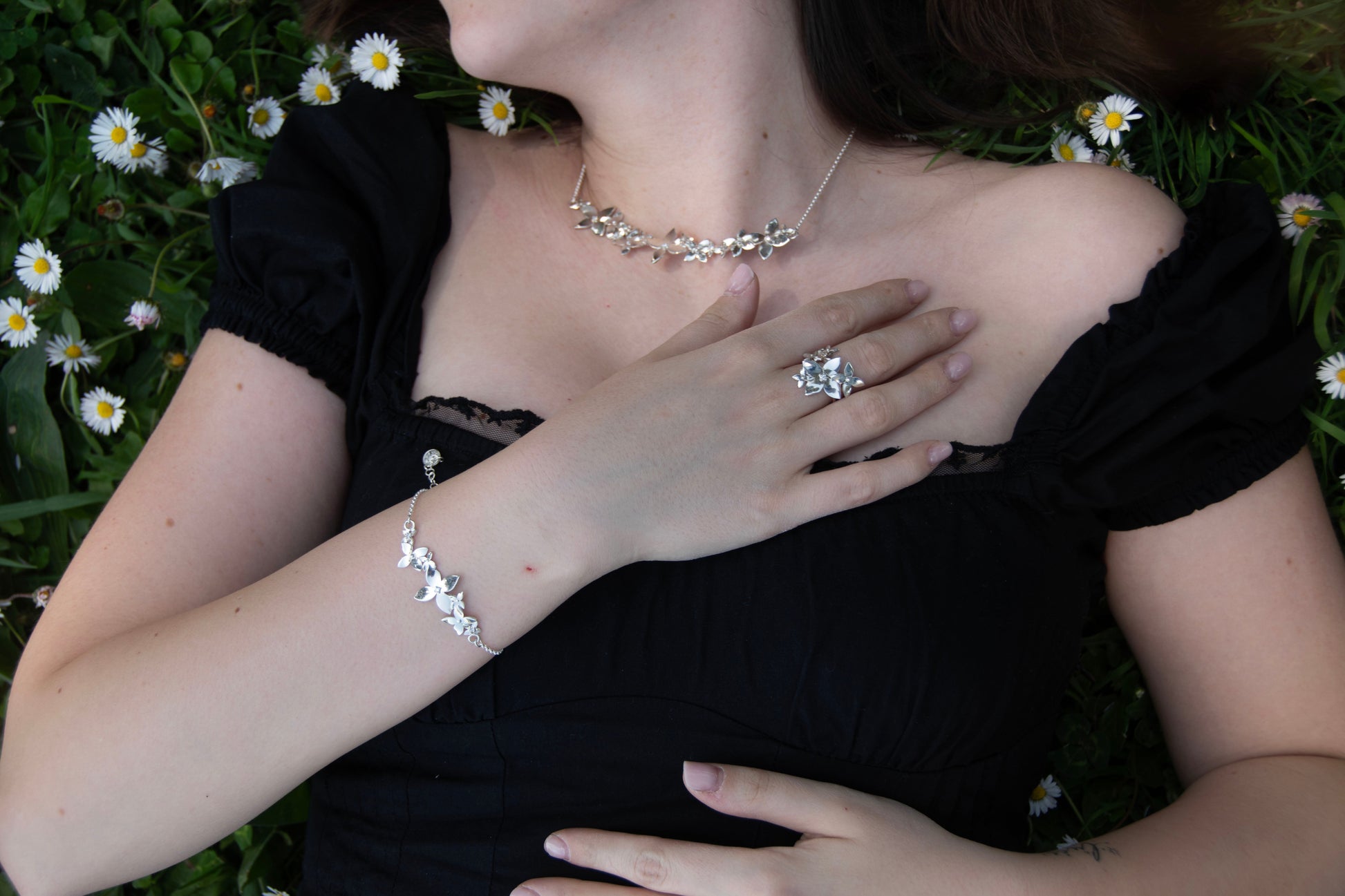 Il Bracciale Clori è interamente realizzato a mano in argento 925 e argento 925 placcato oro con zirconi che donano luce al gioiello.